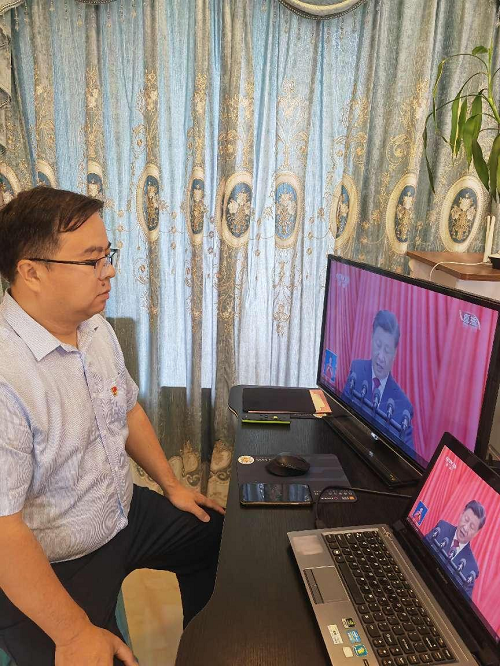中諾通訊黨支部柏萍在家收看黨的二十大開(kāi)幕式