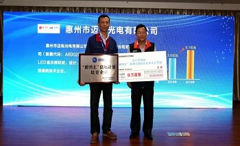 2018年4月18日,東江科技園“瞪羚匯”倍增計劃啟動暨首批培育企業(yè)授牌儀式在惠州市舉辦,園區(qū)管委會領導及各相關部門負責人、園區(qū)企業(yè)主要負責人等約100多人參加本次活動。福日電子成員企業(yè)惠州市邁銳光電有限公司等13家企業(yè)入選“瞪羚匯”倍增計劃培育企業(yè)。惠州邁銳常務副總經理陳曉斌上臺領取了培育企業(yè)牌匾和培育經費支票。