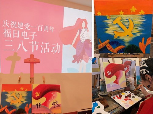 第111個(gè)“三八”國(guó)際婦女節(jié)如約而至,為慶祝建黨100周年,福日電子工會(huì)為每位女職工獻(xiàn)上了精美的花束,并組織了一場(chǎng)彩繪頌黨百年華誕活動(dòng)。女職工們輕拾畫(huà)筆,用她們靈巧的雙手,把對(duì)黨、對(duì)祖國(guó)和對(duì)美好生活的祝福一筆一劃精心繪入自己作品中。