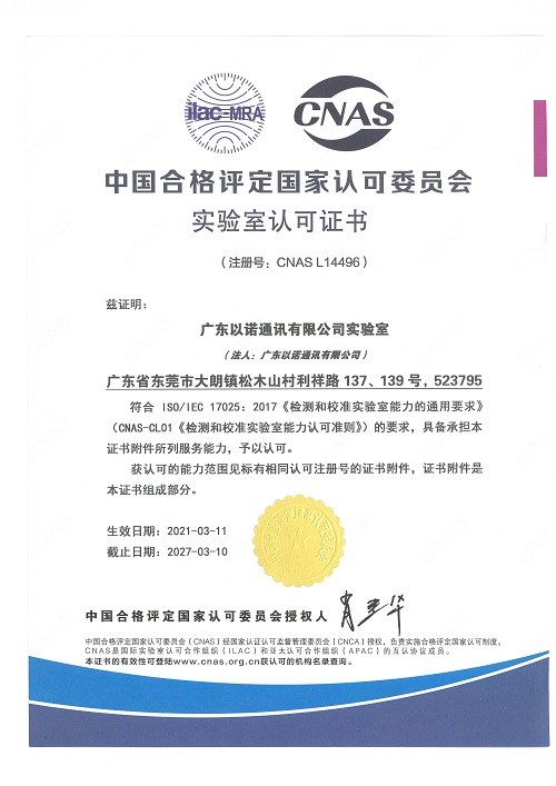 近日,福日電子二級控股子公司廣東以諾通訊有限公司實驗室獲中國合格評定國家認(rèn)可委員會(CNAS)頒發(fā)的實驗室認(rèn)可證書,標(biāo)志其已具備相應(yīng)的檢測技術(shù)能力和管理能力,提升了數(shù)據(jù)的可信度和含金量,避免重復(fù)性檢測,減少企業(yè)成本,提升公司整體形象和品牌價值。以諾通訊實驗室將遵循“專業(yè)、嚴(yán)謹(jǐn)、誠信、創(chuàng)新”理念,積極拓展測試種類和試驗項目,滿足各類客戶需求,持續(xù)提升公司實驗室的專業(yè)水平。